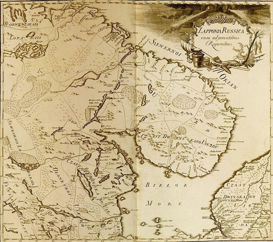Russian Lappland 1745 White Modern Wood Framed Art Print with Double Matting by Vintage Maps