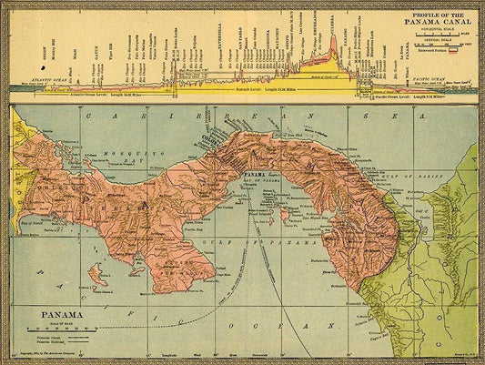 Panama Canal Zone 1904 White Modern Wood Framed Art Print with Double Matting by Vintage Maps