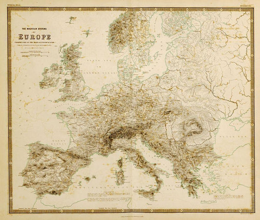 Mountain Systems of Europe White Modern Wood Framed Art Print with Double Matting by Vintage Maps