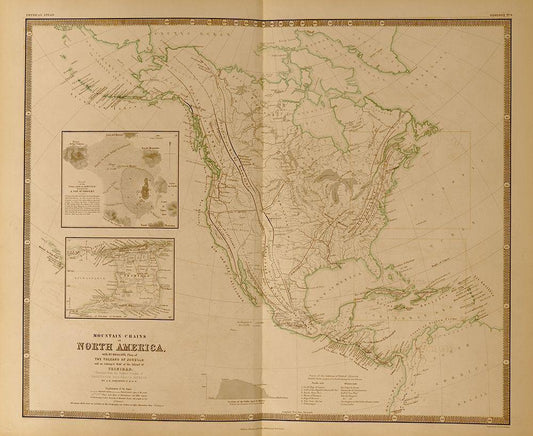 Mountain Chains in North America White Modern Wood Framed Art Print with Double Matting by Vintage Maps
