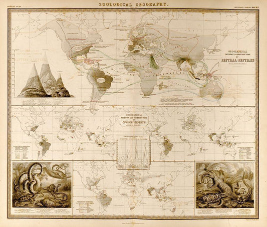 Reptiles Serpents Ophidia of the World White Modern Wood Framed Art Print with Double Matting by Vintage Maps