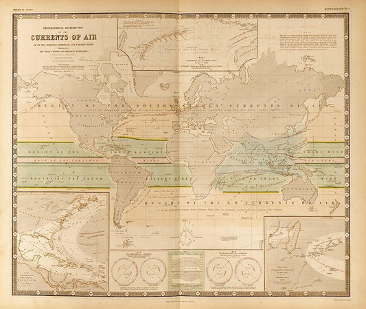 Air Currents of the World White Modern Wood Framed Art Print with Double Matting by Vintage Maps