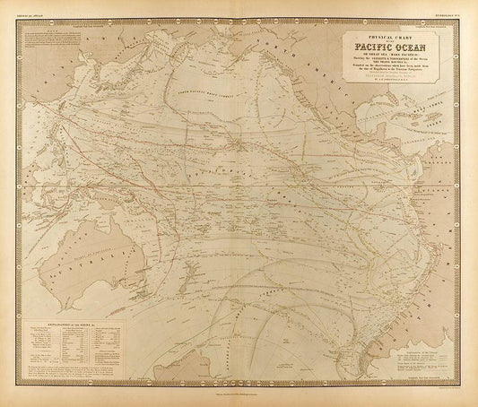 Physical Chart of the Pacific Ocean White Modern Wood Framed Art Print with Double Matting by Vintage Maps