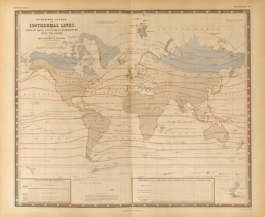 Mean Temperature Across the Globe Isothermal Lines White Modern Wood Framed Art Print with Double Matting by Vintage Maps