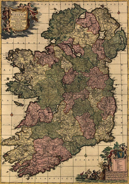 Ireland 1750 White Modern Wood Framed Art Print with Double Matting by Vintage Maps