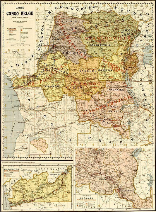 Belgian Congo 1896 White Modern Wood Framed Art Print with Double Matting by Vintage Maps
