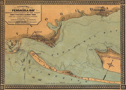 Pensacola Bay Florida White Modern Wood Framed Art Print with Double Matting by Vintage Maps