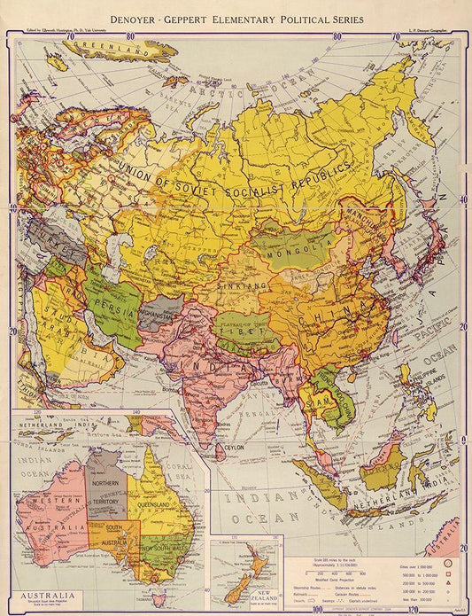 Asia 1934 White Modern Wood Framed Art Print with Double Matting by Vintage Maps