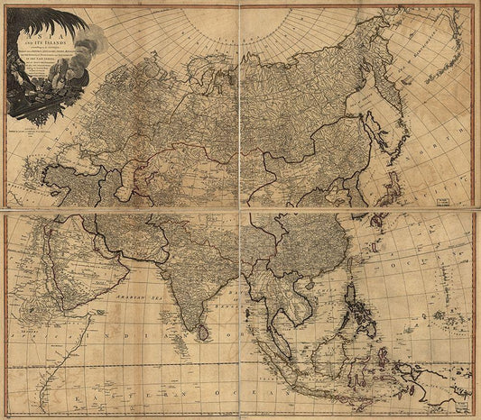 Asia and its islands according to DAnville White Modern Wood Framed Art Print with Double Matting by Vintage Maps