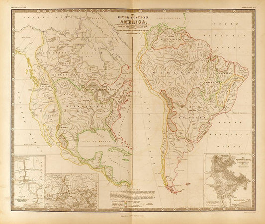 River Systems in the Americas White Modern Wood Framed Art Print with Double Matting by Vintage Maps