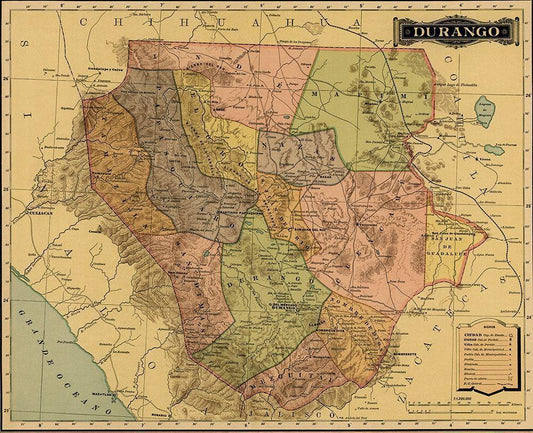 Durango 1844 White Modern Wood Framed Art Print with Double Matting by Vintage Maps