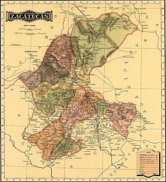 Zacatecas 1844 White Modern Wood Framed Art Print with Double Matting by Vintage Maps