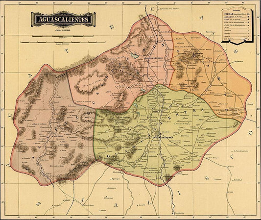 Aguascalientes 1844 White Modern Wood Framed Art Print with Double Matting by Vintage Maps