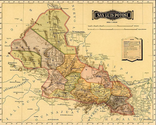 San Luis Potosi 1844 White Modern Wood Framed Art Print with Double Matting by Vintage Maps