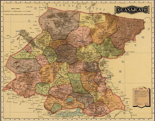 Guanajuanto 1844 White Modern Wood Framed Art Print with Double Matting by Vintage Maps