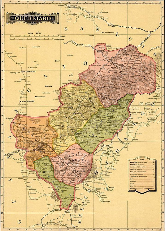 Queretaro 1844 White Modern Wood Framed Art Print with Double Matting by Vintage Maps