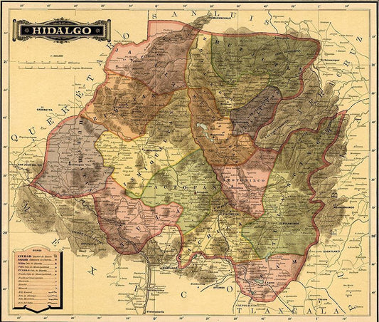 Hidalgo 1844 White Modern Wood Framed Art Print with Double Matting by Vintage Maps