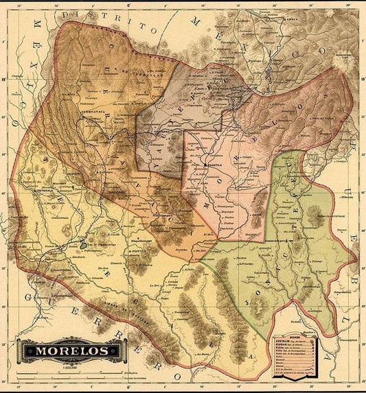 Morelos 1844 White Modern Wood Framed Art Print with Double Matting by Vintage Maps