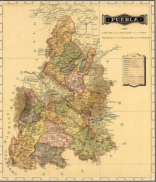 Puebla 1844 White Modern Wood Framed Art Print with Double Matting by Vintage Maps
