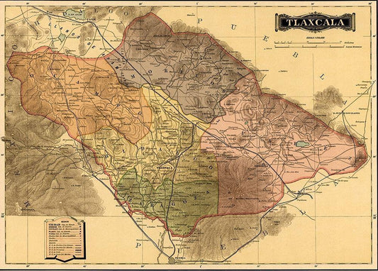 Tlaxcala 1844 White Modern Wood Framed Art Print with Double Matting by Vintage Maps