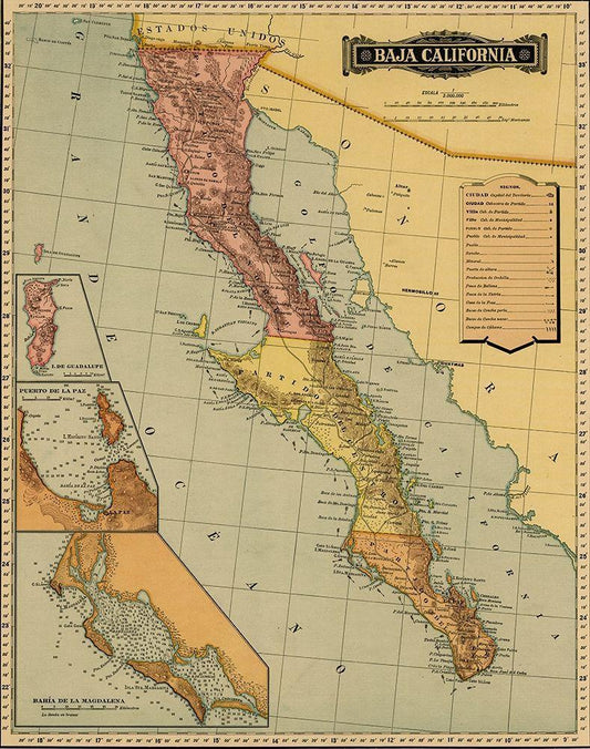 Baja California 1844 White Modern Wood Framed Art Print with Double Matting by Vintage Maps