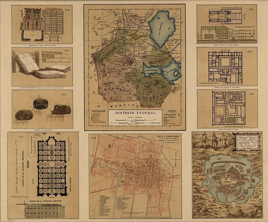 Mexico Federal District 1844 White Modern Wood Framed Art Print with Double Matting by Vintage Maps
