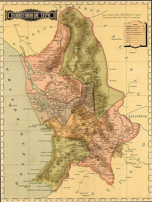 Terrirotrio de tepic 1844 White Modern Wood Framed Art Print with Double Matting by Vintage Maps