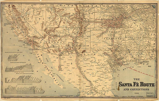 Sante Fe Route into Mexico 1888 White Modern Wood Framed Art Print with Double Matting by Vintage Maps