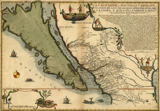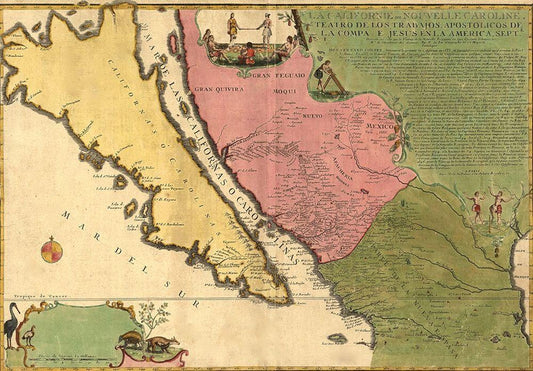 New California 1720 White Modern Wood Framed Art Print with Double Matting by Vintage Maps