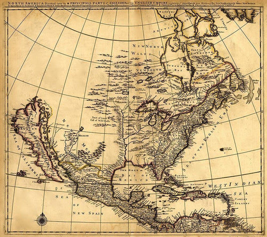 North America and the West Indies White Modern Wood Framed Art Print with Double Matting by Vintage Maps