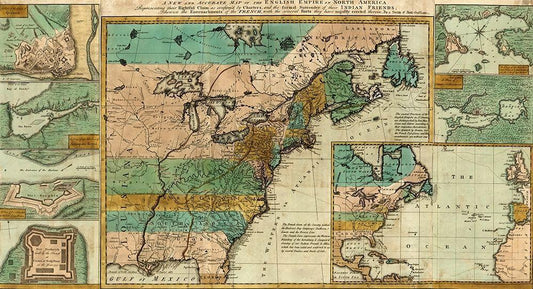 British Colonies in North America White Modern Wood Framed Art Print with Double Matting by Vintage Maps