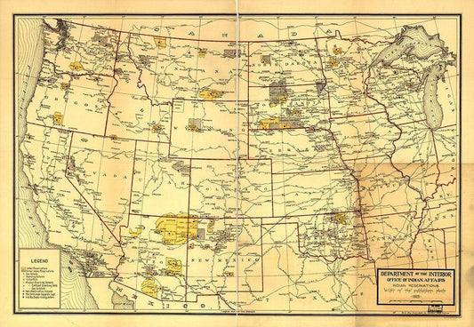 Indian Reservations West of the Mississippi 1923 White Modern Wood Framed Art Print with Double Matting by Vintage Maps