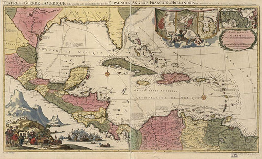 Theatre or War Mexican Archipelago and the Caribbean 1757 White Modern Wood Framed Art Print with Double Matting by Vintage Maps