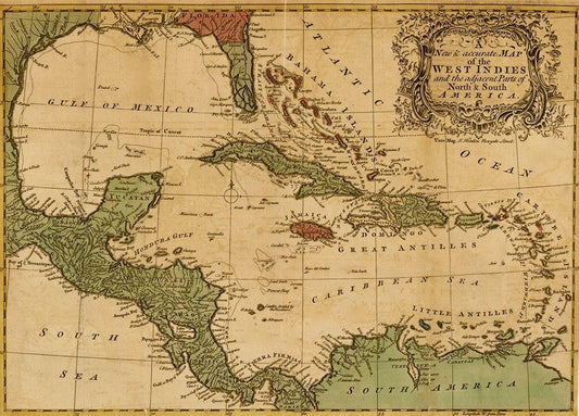 West Indies and the adjacent parts of North and South America 1755 White Modern Wood Framed Art Print with Double Matting by Vintage Maps