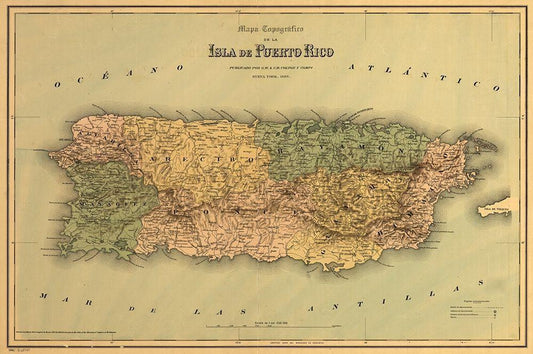 Puerto Rico 1886 White Modern Wood Framed Art Print with Double Matting by Vintage Maps