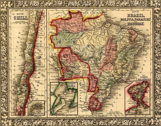 Brazil-Bolivia-Paraguay-Uruguay-Chili 1870 White Modern Wood Framed Art Print with Double Matting by Vintage Maps