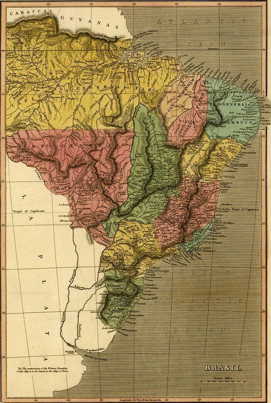 Brazil 1822 White Modern Wood Framed Art Print with Double Matting by Vintage Maps