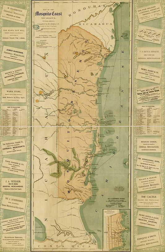 Mosquito Coast of Nicaragua White Modern Wood Framed Art Print with Double Matting by Vintage Maps
