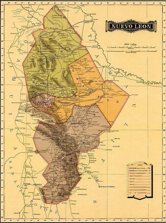 Nuevo Leon 1844 White Modern Wood Framed Art Print with Double Matting by Vintage Maps