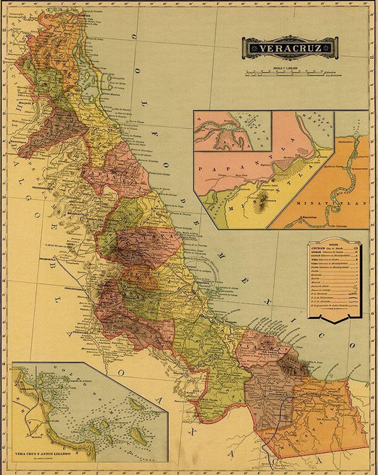 Vera Cruz 1844 White Modern Wood Framed Art Print with Double Matting by Vintage Maps
