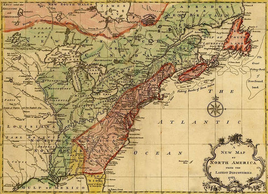 British Dominions in North America from New Foundland to Carolina 1770 White Modern Wood Framed Art Print with Double Matting by Vintage Maps