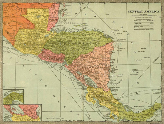 Panama Costa Rica Hondouras Guatamala Salvador British Honduras 1903 White Modern Wood Framed Art Print with Double Matting by Vintage Maps