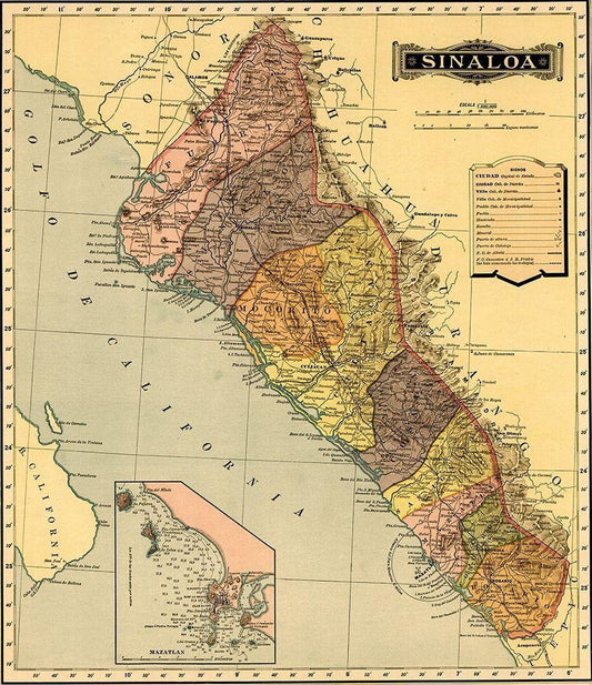 Sinaloa 1844 White Modern Wood Framed Art Print with Double Matting by Vintage Maps