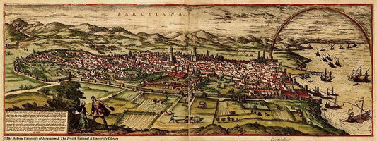 Barcelona Spain White Modern Wood Framed Art Print with Double Matting by Hogenberg, Braun