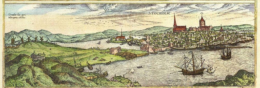 Stockholm Sweden White Modern Wood Framed Art Print with Double Matting by Hogenberg, Braun