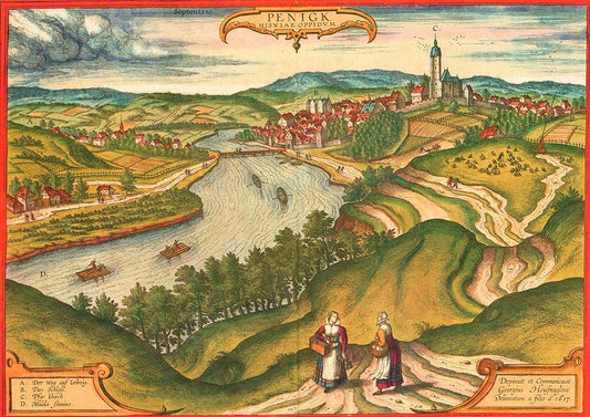 Penig Germany White Modern Wood Framed Art Print with Double Matting by Hogenberg, Braun