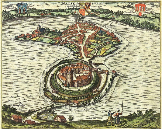 Ratzeburg Germany White Modern Wood Framed Art Print with Double Matting by Hogenberg, Braun