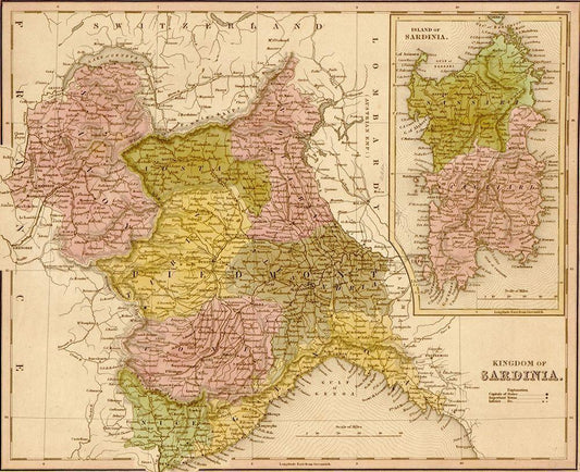 Kingdom of Sardinia 1844 White Modern Wood Framed Art Print with Double Matting by Vintage Maps