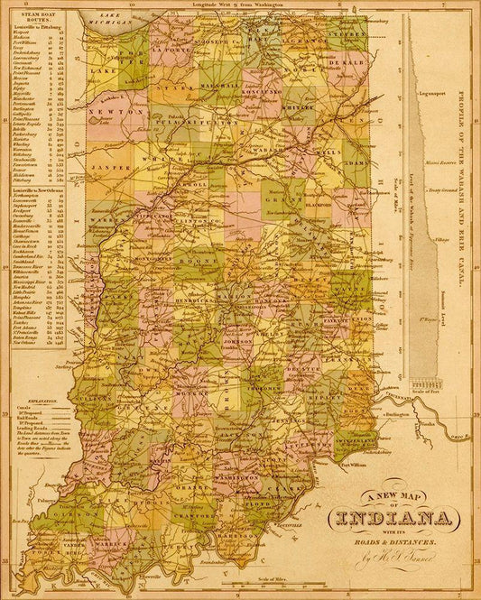 Indiana 1844 White Modern Wood Framed Art Print with Double Matting by Vintage Maps