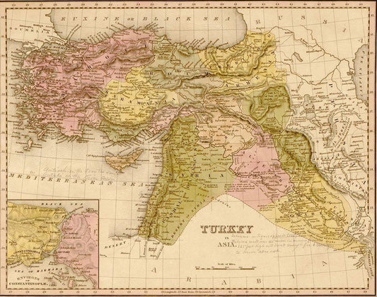 Turkey 1844 White Modern Wood Framed Art Print with Double Matting by Vintage Maps